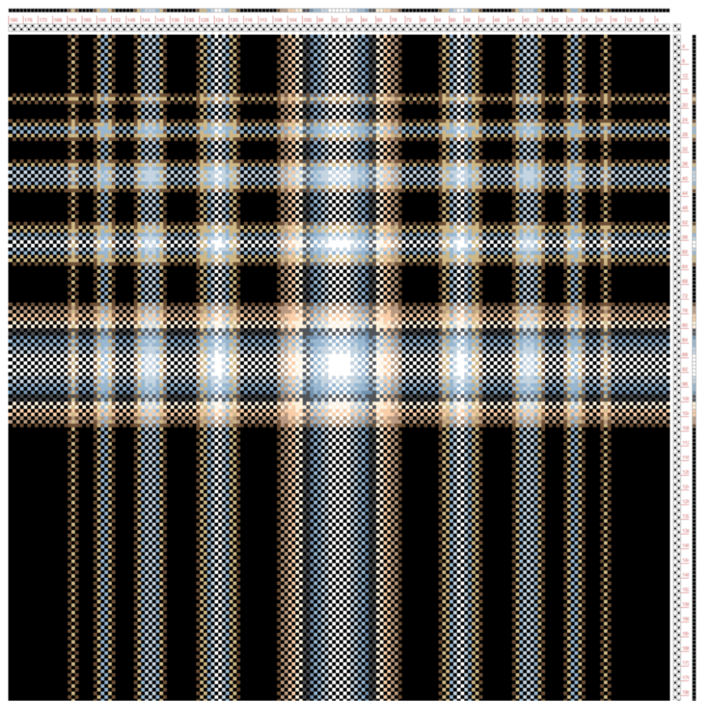If you want clear stripe patterns, choose a simple draft. If you want the draft’s woven pattern to shine, use a dark color for warp and a light one for weft (or vice versa).
